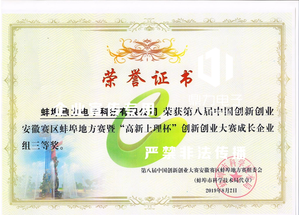 第八屆中國創(chuàng)新創(chuàng)業(yè)大賽安徽賽區(qū)蚌埠地方賽三等獎(jiǎng)